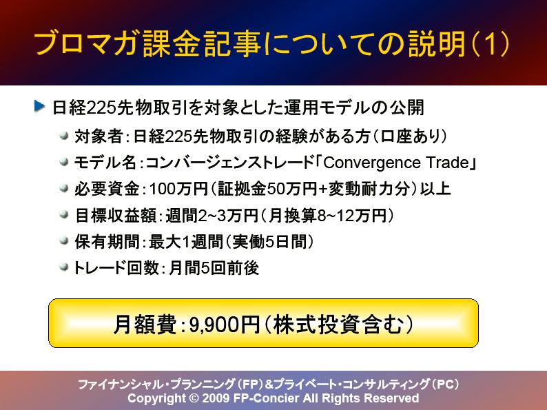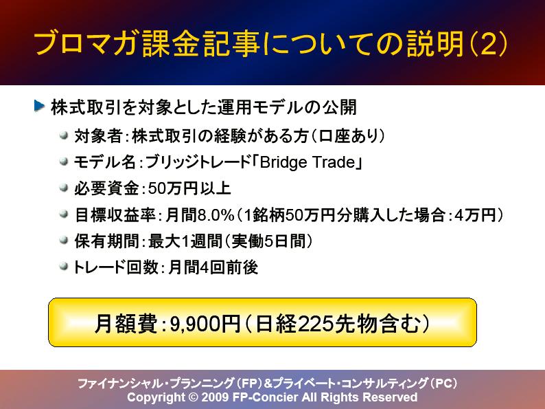 内容は日経225先物取引と株式取引の運用モデルを各々1つとなります。