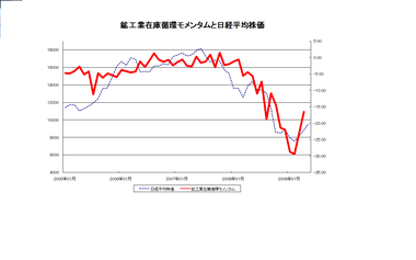 まず、出発点は景気指標と株価の連動性の高さです。すでに何度か説明させていただいた在庫循環モメンタムを使います。出荷金額の増減率から在庫金額の増減率を差し引いて作成する指標です。