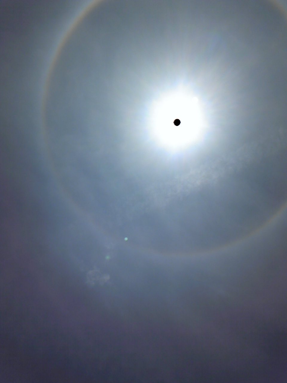 家に帰って調べると、太陽環というもので日暈(ひがさ)ともいう現象らしいです。
