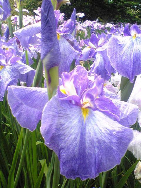 はな , 花しょうぶ , アザミ、アジサイ、大高緑地:大高緑地の花しょうぶも満開1年で一番綺麗でした。普段紹介されていませんが今年はここが一番でした。アジサイも咲き始め、これは1本の木でいろんな色になっています。アザミも満開で花を摘んで食べるのでしょうか、つんだ後がありました。