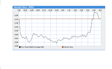 ダウ平均株価は1.36ドル、0.02%と僅かに上昇しました。といってもザラバの動きはダイナミックでした。3.78ドル安で開けましたが、これまでの大幅な上昇の後では利益確定の動きが強く12時半ごろには一時130ドル安まで下落しました。