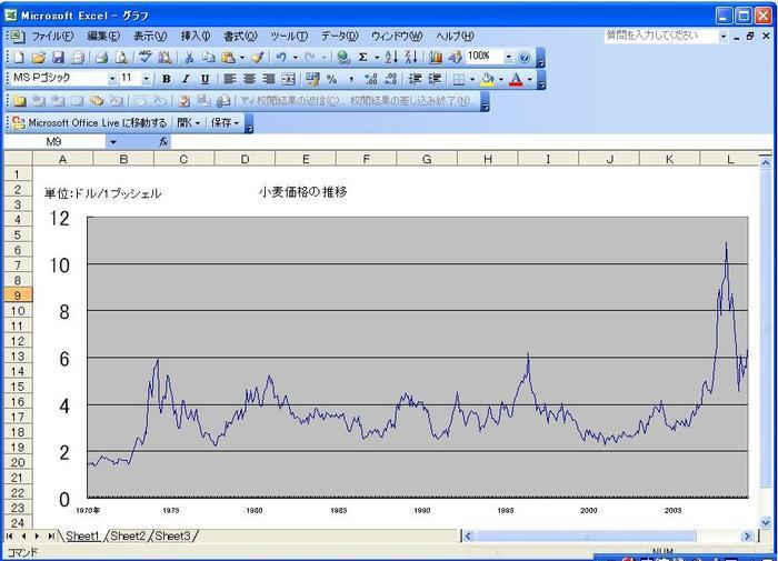 1970年から直近までの小麦価格のチャートですが、今年の安値5ドル/1ブッシェルも長期で見ればかなり高い水準にあることが分かります。人口増加により食料が足りなくなる可能性は高いため、長期で見ると食料品価格に恩恵を受ける銘柄は良いでしょう。