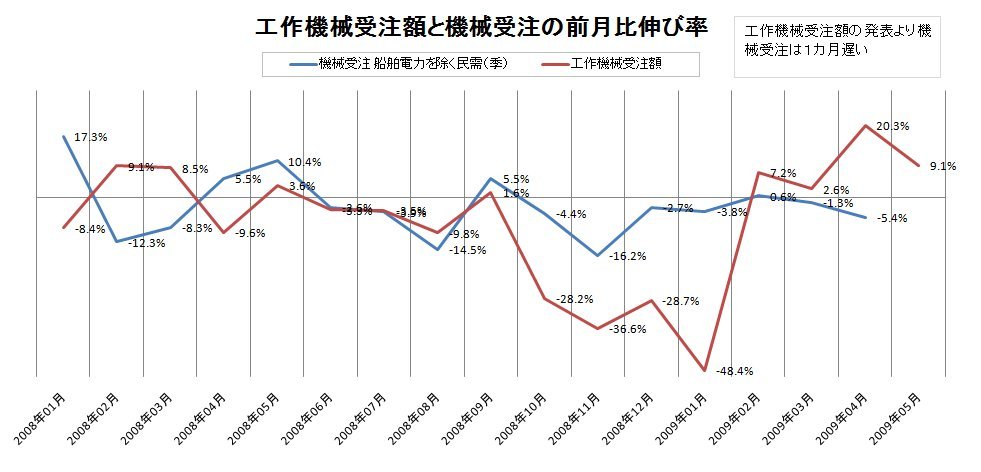 船舶・電力を除く民需はマイナス5.4%と前月より悪化。