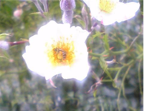 1.西洋みつばちと萩の花 2.日本のみつばちの一種と野イバラ 3.みつばちの天敵のご臨終、撃退されたか?