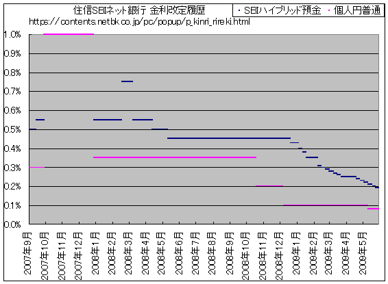 住信SBIネット銀行の金利の改定履歴をグラフにしました。