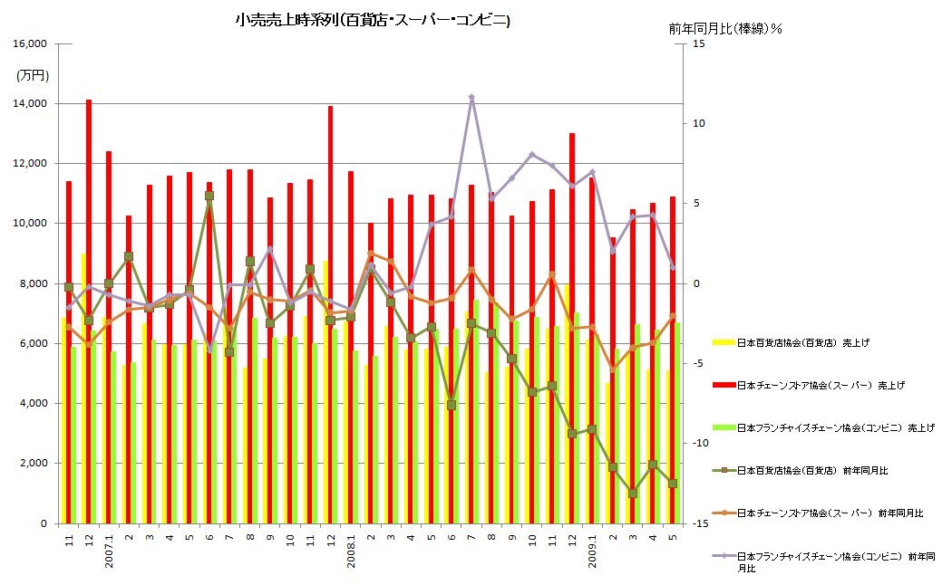 日本フランチャイズチェーン協会のコンビニ売上高の