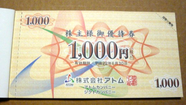 本日(7412)アトムの株主優待が到着しました。