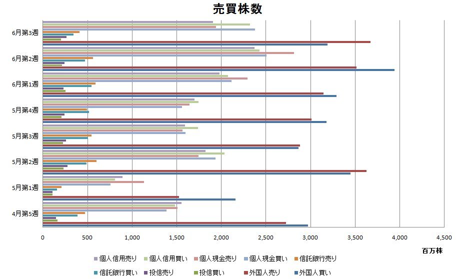 セオリー通りに下落時の外国人の売り、個人の買いでした。