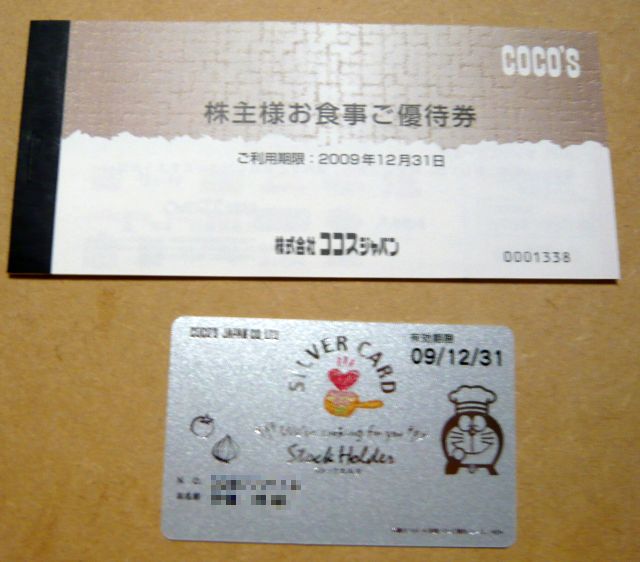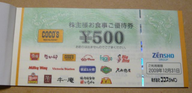 優待券とストックホルダーカードの有効期限は平成21年12月31日までです。