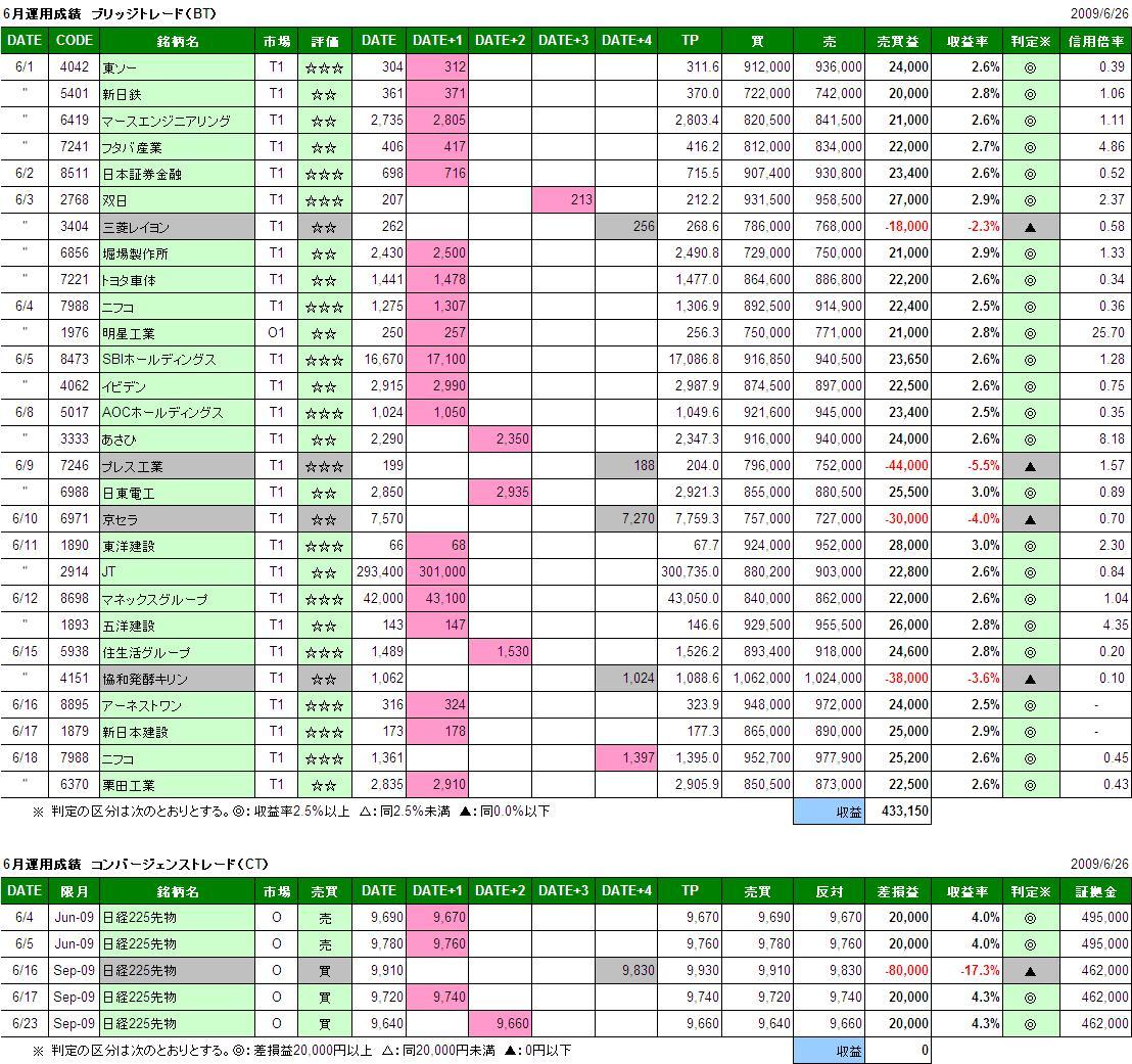 6月の運用成績はブリッジトレード(株式取引)では約24万円の収益となり投下資本額にも寄りますが、収益を上げた方がほとんどでした。