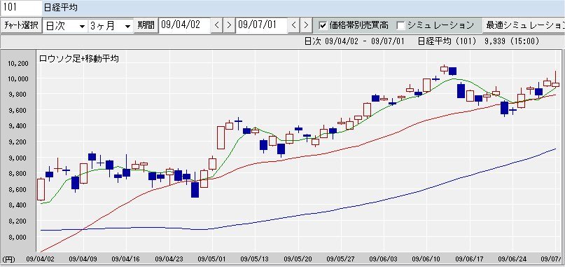 75日移動平均線 9,100↑