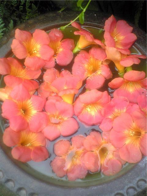水に浮かべたノウゼンカズラは涼しげできれいですね。