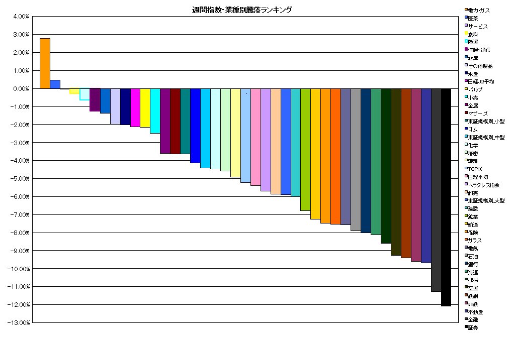 週間 指数・業種別騰落ランキング