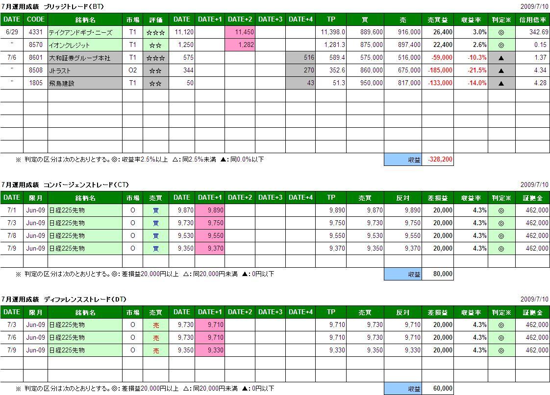 7月第2週はブリッジトレード(株式取引)にて累計損益がマイナスに転じました。