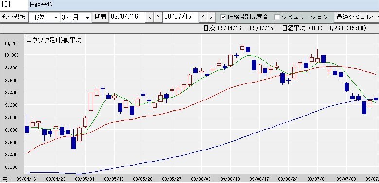 75日移動平均線 9,292↑