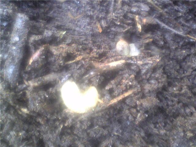 最近カブトムシをよく見るがもう幼虫になっているようだ。掘れば幼虫がうじゃうじゃ出てきた。ここでは2匹見えるが先程まで6匹はいた。直ぐもぐってしまう。まだ2~3センチぐらいだ。