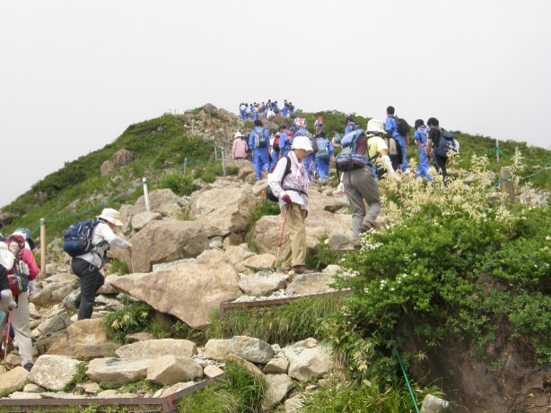 7時間と時間はかかりますが、そんなに急登(きゅうとう)もなく、比較的高齢者向きです。少し、怖い稜線歩きはありますが。
