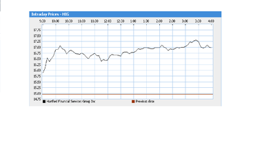 予想を上回る決算に素直に反応する展開で、ダウケミカルの株価が6.22%となったほか、ハートフォード・ファイナンシャル・サービスが15.57%上昇したのが印象的でした。ザラバの動きはこのようになっています。