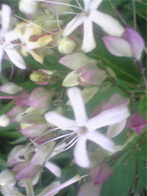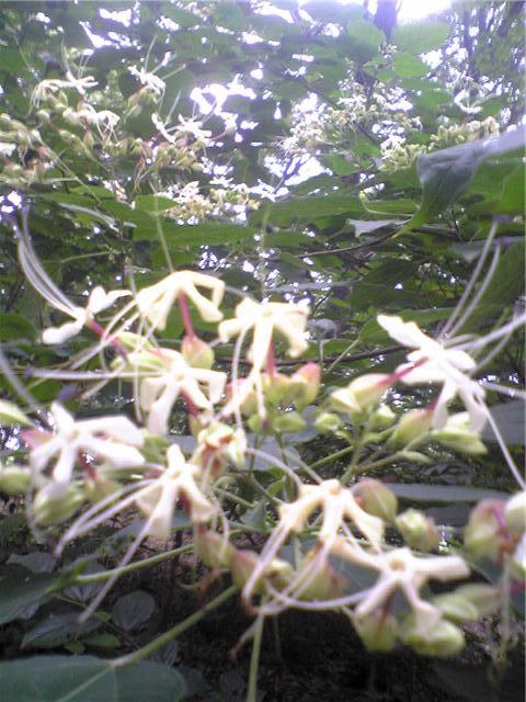 はな , 蝶の舞い降りる花 , クサギ :蝶の舞い降りる花です。主に大型のアゲハチョウがよく来ます。秋には鳥たちが紫の実を食べに来ます。森の母なる木です。この日もクロアゲハが来ていました。