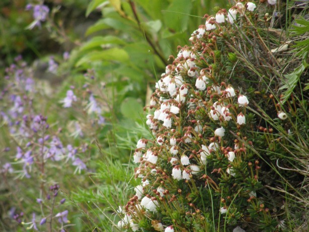 左から、アカモノ、アオノツガザクラ、ツガザクラ、いずれもつつじ科。