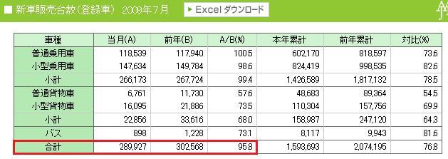 本日発表されました7月の新車販売台数は289,927台となり、前年比4.2%減まで回復してきました。(軽除く)