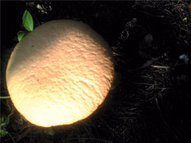 草むらにアンパンやメロンパンがあった???きのこの一種で丁度アンパンや大きいメロンパンぐらいの大きさです。大きいものでは40cmにもなります。これは丁度20cmぐらいでした。まさにメロンパン!!触感も柔らかくまるでパンのようでした。