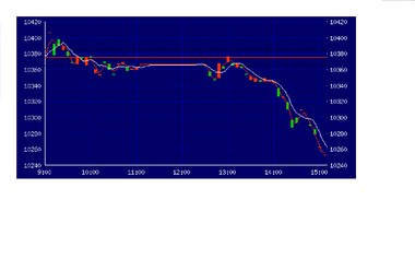 30円高で寄り付いた日経平均株価は軟調気味に推移していたのですが、午後1時過ぎから下げが加速しはじめ、大引けは122.48円、1.18%安となりました。
