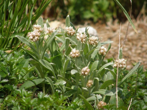 「タカネヤハズハハコ」は「タカネウスユキソウ」とも言うようです。ウスユキソウはサウンドオブ ミュージックにでてくるエーデルワイズと同種ですよね。それに近い品種ですね。