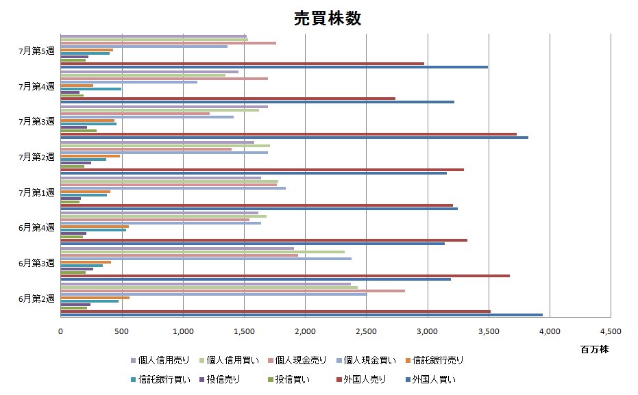 個人の信用は534億円の売り越しと、3週連続の売り越し