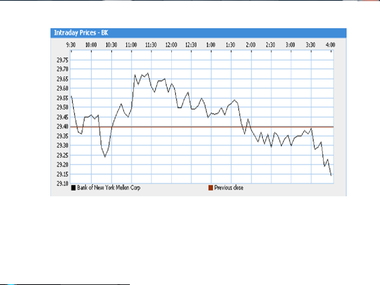 また、前日まで堅調な上昇を続けていた金融セクターが反落しました。ニューヨークメロン銀行の株価の動きが象徴的です。