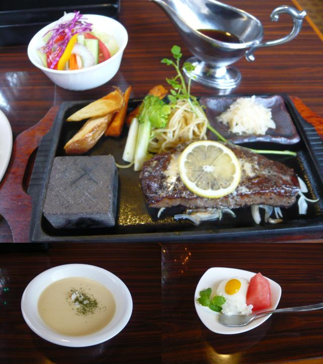 お肉はこれで150gですが、日本の霜降り信仰に反して(?)脂は少ないけど肉自体が美味しいって言う欧米の高級ステーキ屋さんで出てくる肉に近い感じでしたので美味しいお肉でしたよ(^^)