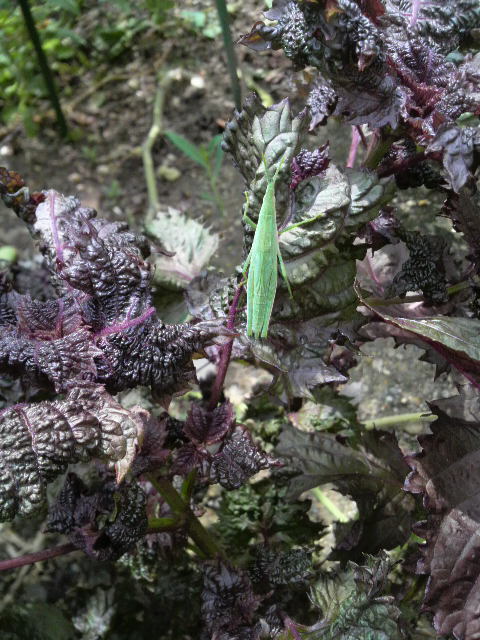 シソの葉っぱが穴だらけなのは、このバッタのせいでしょう。