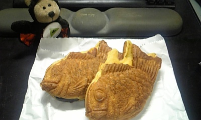 たいやき食べて糖分取って、脳に栄養を送る。これも脳にいいこと。甘いもの食べるときのいいわけー(笑)