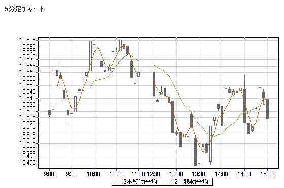 (始値10,530.62レンジ10,487.70-10,585.37±97.67)