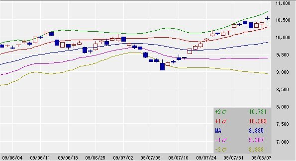 25日移動平均線 9,835↑