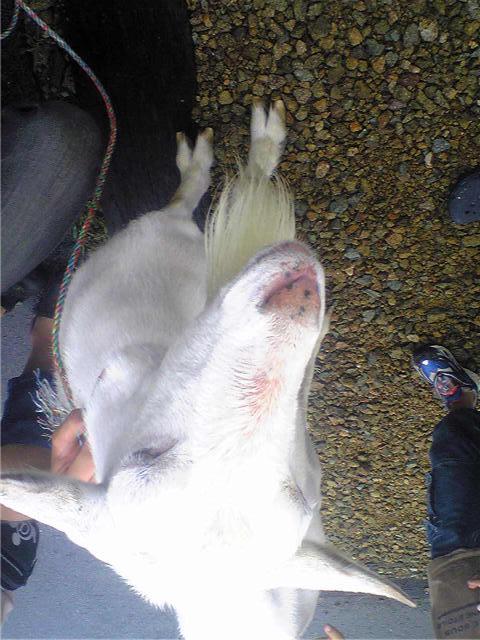ヤギ , ヒツジ , 牛:家畜も今日の地震には驚いたでしょう。こうやってひっくり返ったでしょうか?目を回したでしょうね。