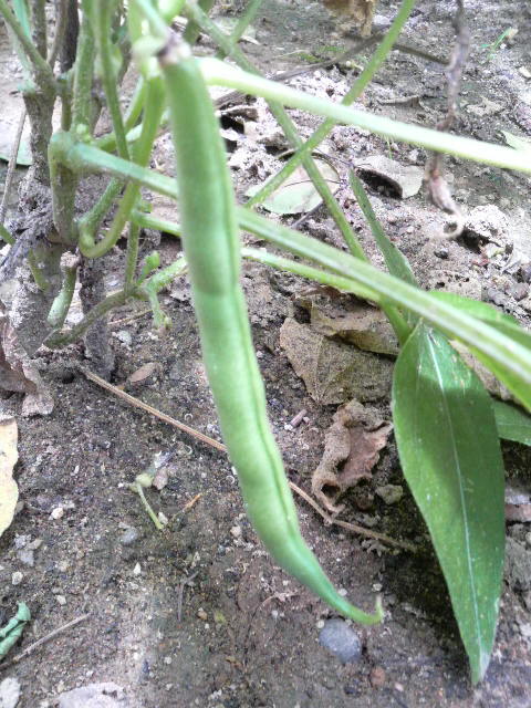 子供がもらってきた豆のような種をまいたら、芽が出てやがて花が咲き、実がなりました。