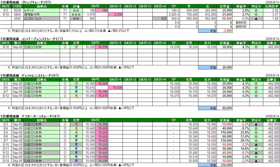 8月第2週は全体として株式+21,600円、日経225先物+40,000円(1枚の場合)の運用成績となりました。