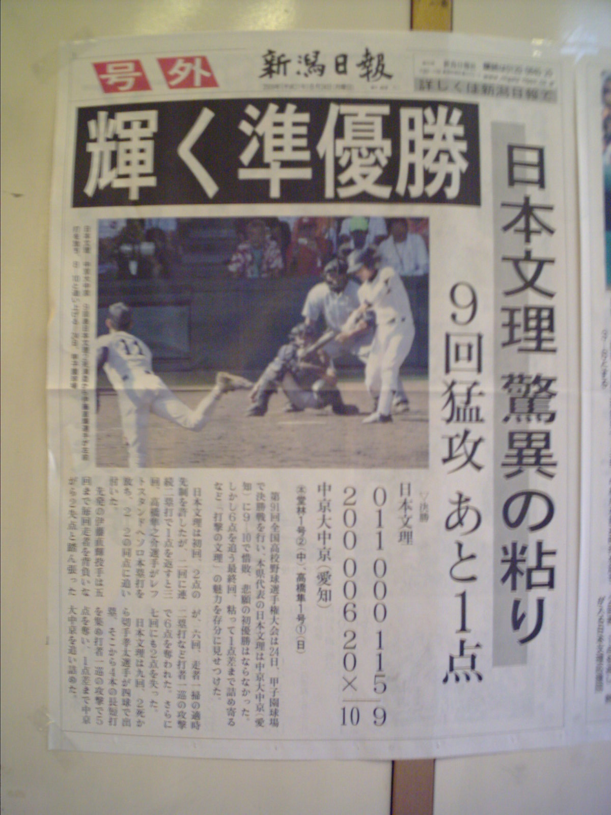 地元の新潟日報社と大会を主催する朝日新聞社は県内であわせて7万部をこえるという号外を配り新潟代表として初めての準優勝の快挙を伝えました。