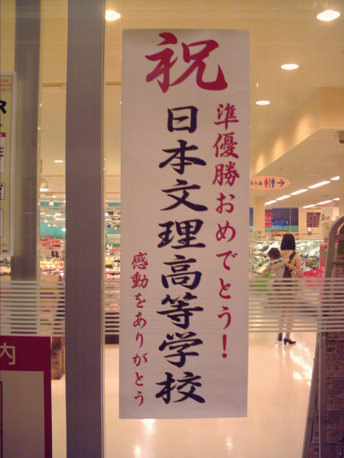 新潟市中央区のスーパーでは日本文理高校の準優勝が決まった直後の午後4時前から店内には準優勝を祝うのぼりが設置されました。このスーパーでは日本文理高校の準優勝を祝って魚や野菜など多くの食品が値引きされ、決勝試合を家で観戦し終えた多くの買い物客でにぎわっていました。