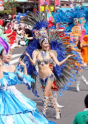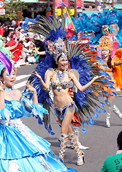 東京・下町の夏を華やかなパレードで締めくくる「第29回浅草サンバカーニバル」(実行委主催、毎日新聞社など後援)が29日、東京都台東区浅草で開かれた。参加者たちは、躍動感にあふれたサンバのリズムと情熱的なダンスを披露。強い日差しの中、沿道に詰めかけた50万人の観客はサンバに酔いしれた。