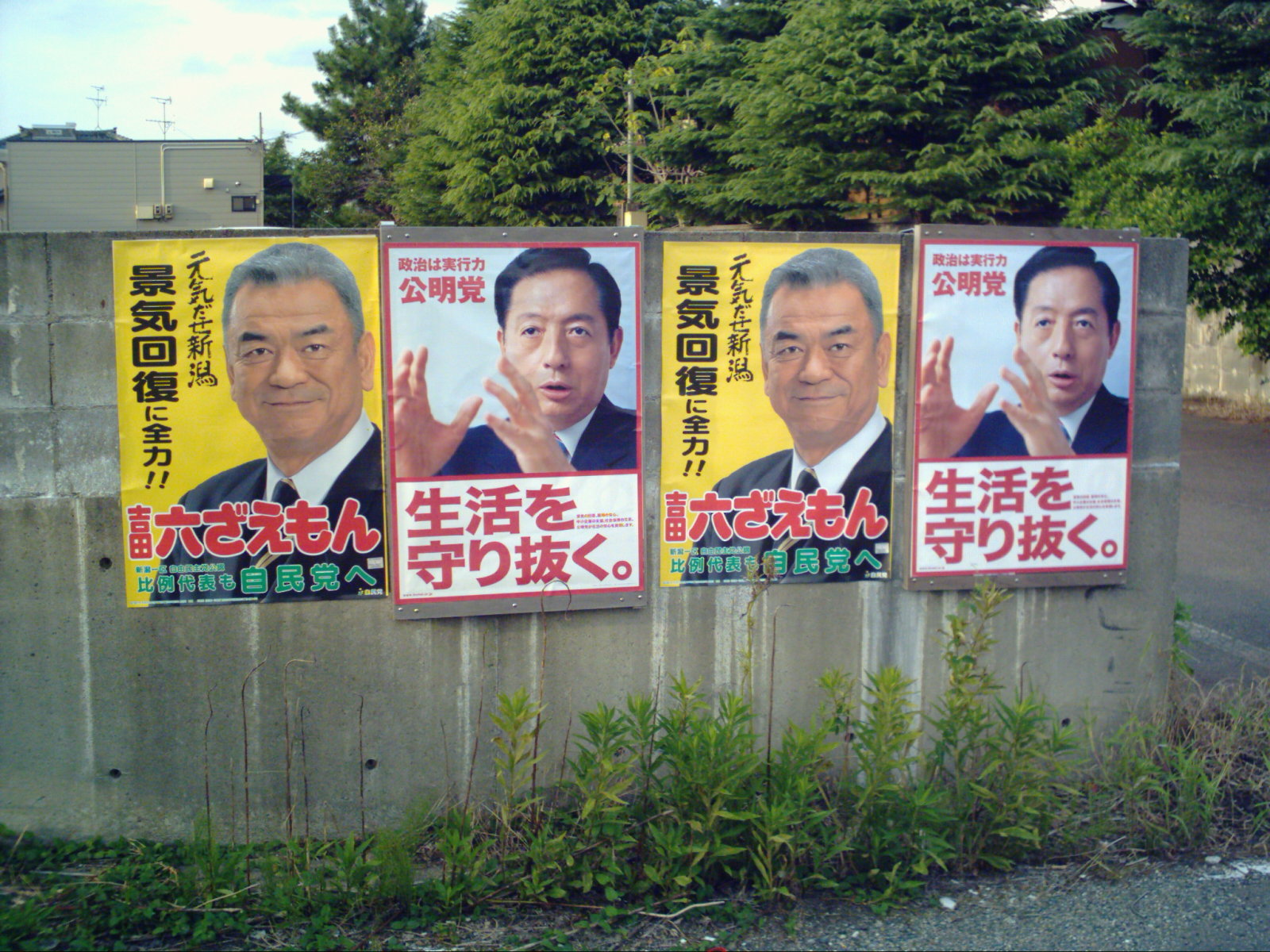 こんな 曲がり角のところに、ポスターが 貼ってあります。