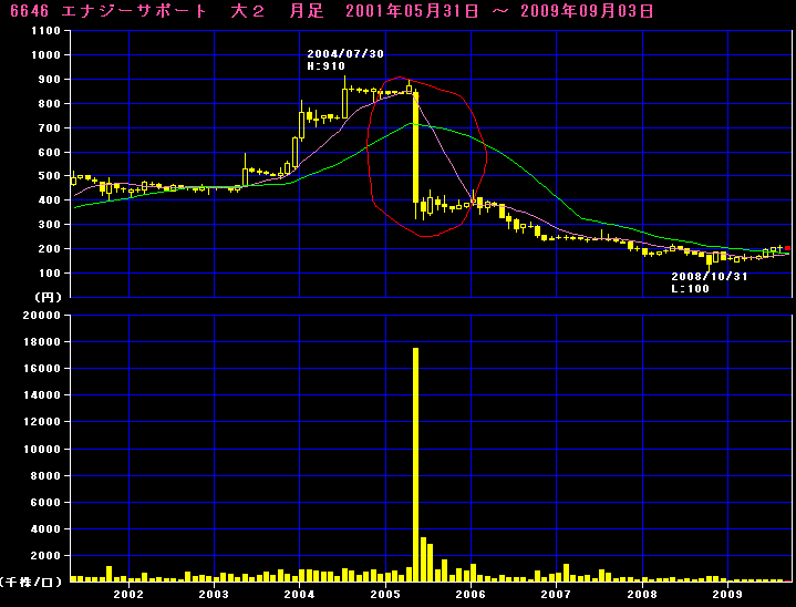 と、こんな訳で以前に似たような事が起こった銘柄を思いだしてたらエナジーサポートって銘柄を発掘しました!今をときめく日本ガイシの子会社です!無理矢理スマートグリッド関連に入れてもらえれば面白いと思うんですが、いかんせん地味過ぎますかね~。