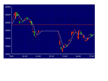 41円高で寄り付いた日経平均株価は、すぐに失速して、後場開始直後には一時71円安を付けましたが、引けにかけて僅かに戻し、27.53円、0.27%の下げで終了しました。