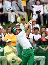 スコアが動くといわれる第3ラウンド。「スイングスピードを上げて思い切り打つ」とのチェックポイントを心掛け、石川はティーグラウンドに立つ。(産経)