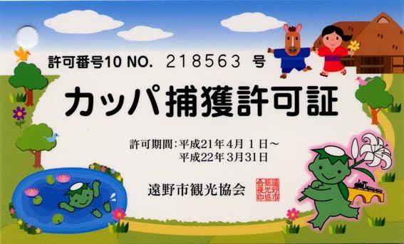 今日「カッパ捕獲許可証」が届いてました。^^