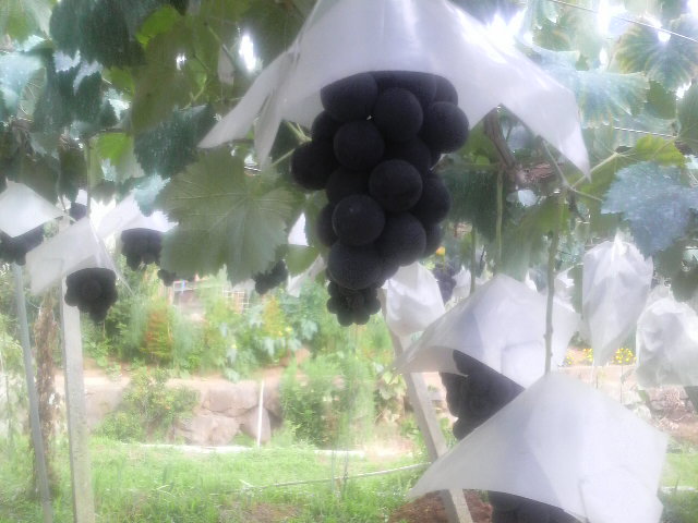 私が行った農園はブドウが全部袋で覆われており、隙間からのぞいて良さそうなのをもぎって食べました。