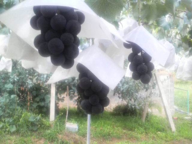 確かにぶどうにカバーがかかっていると、牛のようにも見えるかもしれませぬ。意外ながら思わず笑ってしまいました(^▽^)