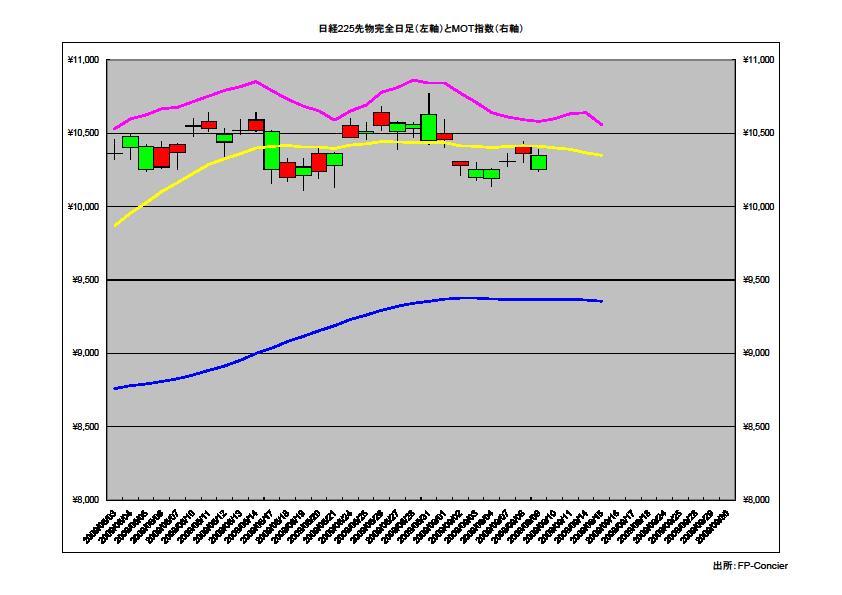 以前も載せましたように、MOT指数では下落基調ですので、ちょうど黄線が抵抗線の機能を果たしました。
