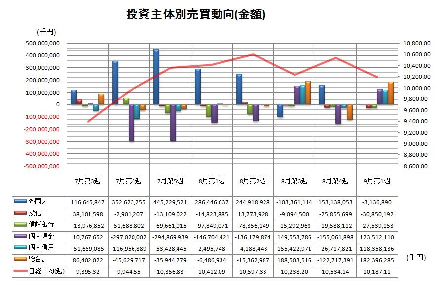 これで信託銀行は6週連続の売り越しとなりました。